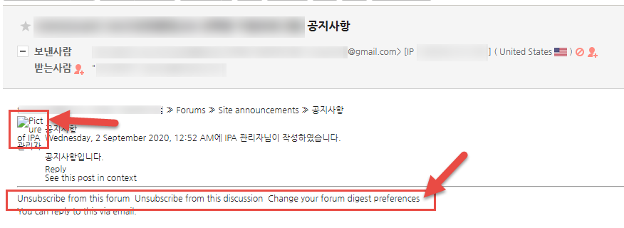5) 메일을 발송할 수 있는 행위(사이트 공지사항 작성, 메시지발송 등)를 하여 발송된 이메일을 다시 확인해본다.