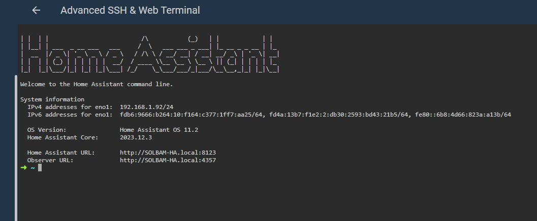 위 이미지와 같이 Copied! 로 복사되었다. 이제 HomeAssistant에 SSH로 접속할 순서이다.