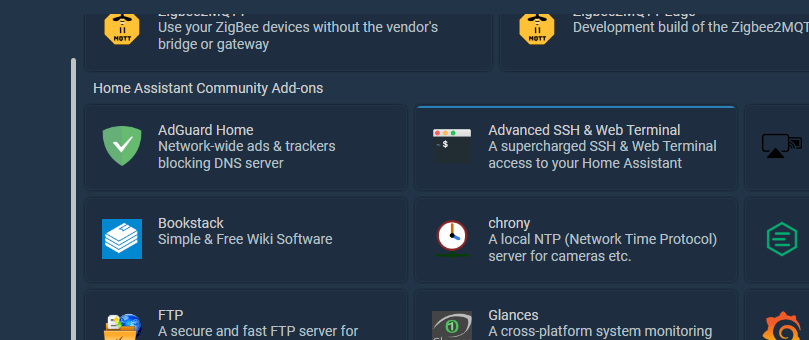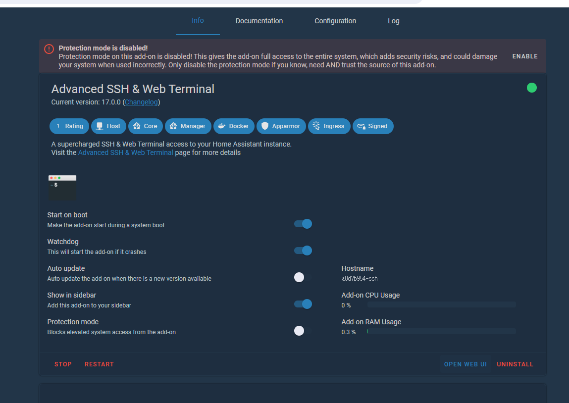 Home Assistant Community Add-ons에 Advanced SSH & Web Terminal이 있다. 이것을 설치했다고 가정한다.