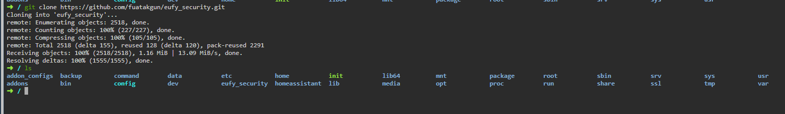 루트 디렉터리에 설치하고자 하는 eufy_security폴더가 존재하는 것을 확인할 수 있다.