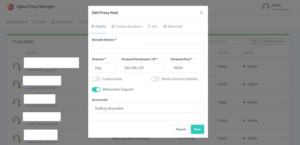 5. 나의 경우, Nginx Proxy Manager로 역방향 프록시를 설정하여 사용하기에, 해당 내부IP와 Port를 재설정하였음.